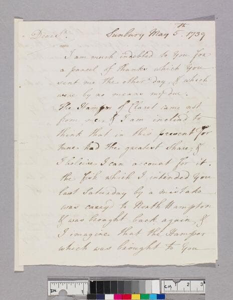 Turner, Edward, Sir, 1719-1766. Letter to Theophilus Leigh, 1693-1785