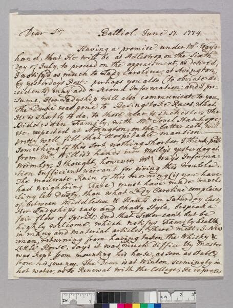 Leigh, Thomas, 1734-1813. Letter to Theophilus Leigh, 1693-1785