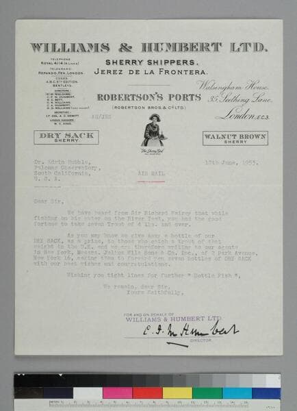 C. I. M. Humbert, of Williams and Humbert, Ltd., writes to EPH