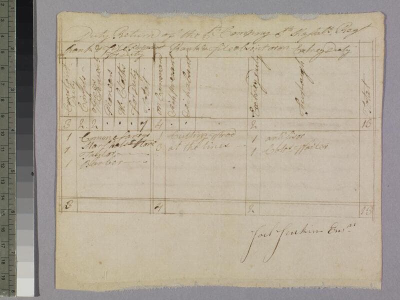 Duty return of the 5th Company of the 8th Massachusetts Regiment, ca. 1781