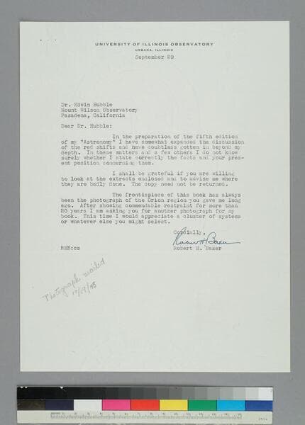 Robert Baker of the University of Illinois Observatory writes to EPH