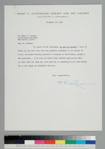 Gilbert Brown, of the Huntington Library and Art Gallery, writes to thank EPH