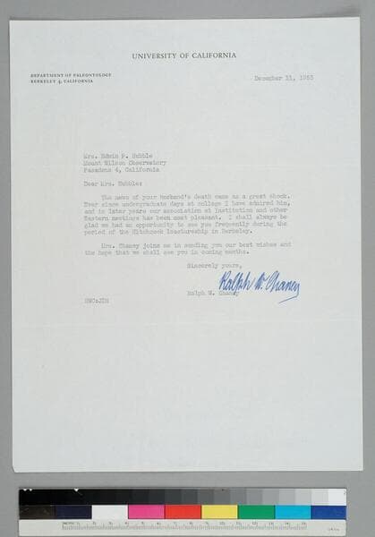 Ralph Chaney, Department of Paleontology, University of California, sends his condolences to GBH