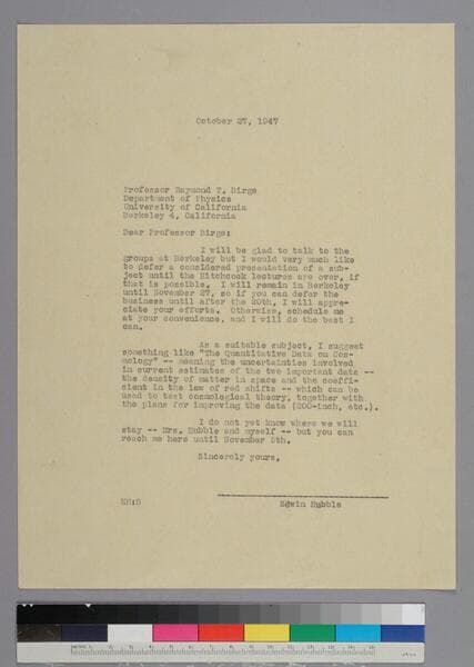 EPH writes to Raymond Birge of the University of California