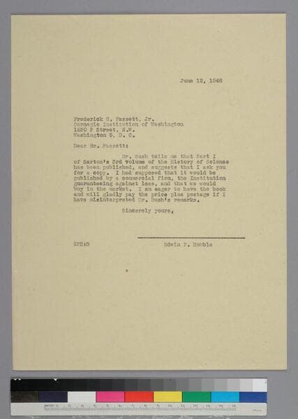 EPH writes to Frederick Fassett of the Carnegie Institution