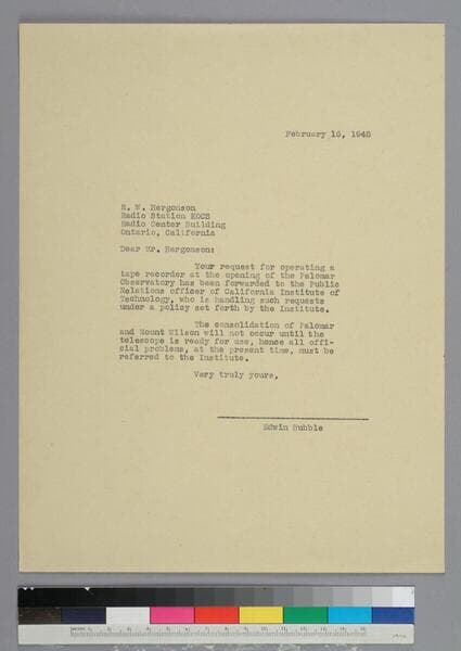 EPH writes to radio personality R.W. Hergonson of Radio Station KOCS