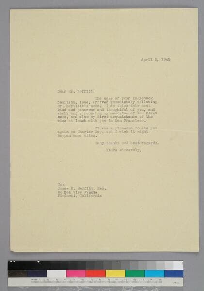 EPH writes to banker and University of California regent