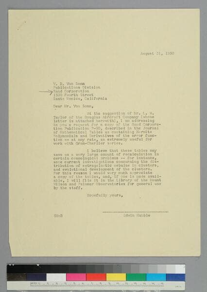 EPH writes to V. B. Von Sonn of the Publications Division