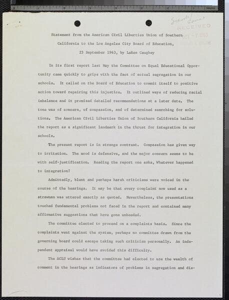 Statement from the American Civil Liberties Union of Southern California to the Los Angeles City Board of Education