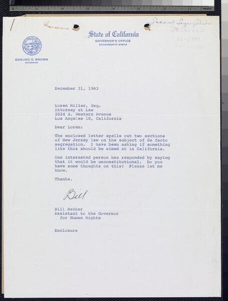 David K. Carlisle letter and reports on de facto segregation in LA schools