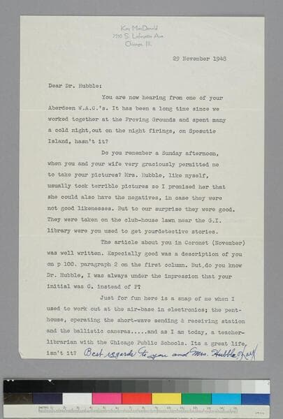 Kay MacDonald, who worked with EPH in Aberdeen as a WAC, writes to EPH