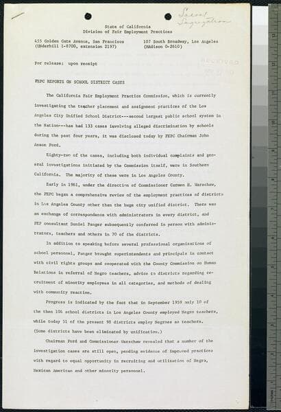 State of California Division of Fair Employment Practices: FEPC Reports on School District Case