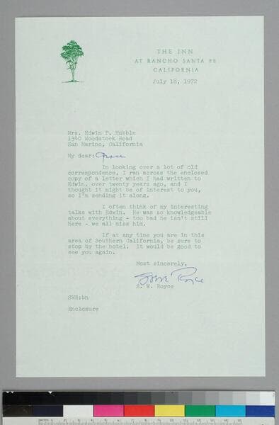 Stephen Royce, of the Inn at Rancho Santa Fe, writes to GBH