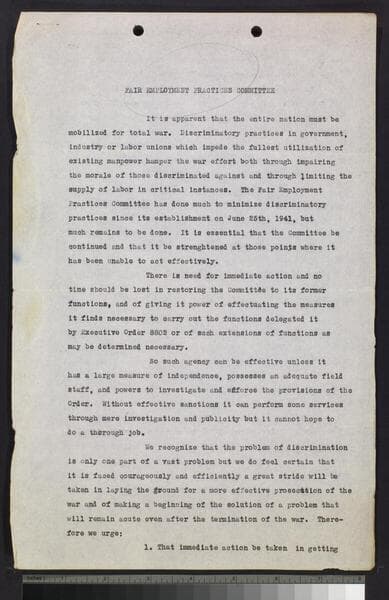 2 items: memo, 1/10/1973, from Robert Lobdell to William F. Thomas related to the "current general FEPC investigation at the Los Angeles Times ; 8-pp. report headed "History of Los Angeles Times Equal Employment Opportunity Policy and Practices."
