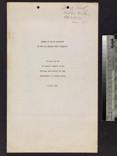 Approx. 25 items: memos, letters, reports, transcript of lawsuit "Los Angeles Police Protective League v. Darryl F. Gates(LAPD Chief)," news clip copies.