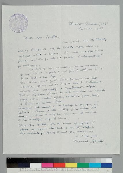 Italian astrophysicist Abetti Giorgio sends his condolences to GBH