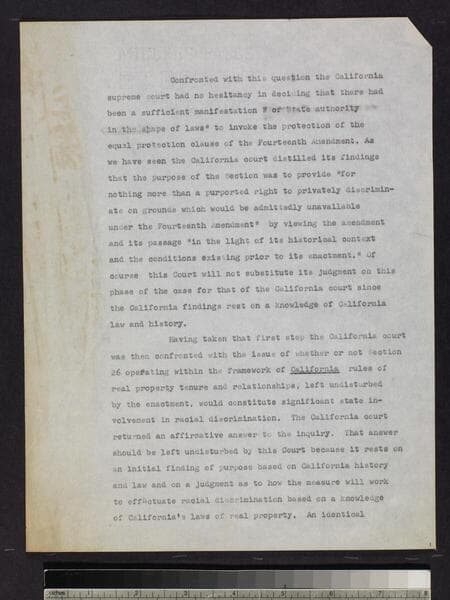 The collection contains 10,454 semi-cataloged items andis housed in 72 boxes and 3 oversize folders. The collection documents Loren Miller's four decades of fighting for equality and civil rights and his legal work against racial real estate covenants and discrimination in housing. It contains material related to his work with several organizations including the NAACP, National Urban League and the ACLU. The collection also contains material related to Loren Miller's personal life and family as well as his journalism career and ownership of the California eagle. The collection also contains many items related to Langston Hughes including letters written between Miller and Hughes and copies of some of Hughes' writings. The collection contains the following types of material: correspondence, telegrams, postcards, manuscripts, speeches, newspaper and magazine clippings, publications including full magazines, briefs and other legal documents, brochures, meeting minutes, reports and photographs as well as research notes for and drafts of Miller's book The petitioners: The story of the Supreme Court of the United States and the Negro.