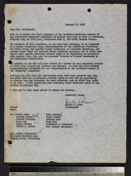 The collection contains 10,454 semi-cataloged items andis housed in 72 boxes and 3 oversize folders. The collection documents Loren Miller's four decades of fighting for equality and civil rights and his legal work against racial real estate covenants and discrimination in housing. It contains material related to his work with several organizations including the NAACP, National Urban League and the ACLU. The collection also contains material related to Loren Miller's personal life and family as well as his journalism career and ownership of the California eagle. The collection also contains many items related to Langston Hughes including letters written between Miller and Hughes and copies of some of Hughes' writings. The collection contains the following types of material: correspondence, telegrams, postcards, manuscripts, speeches, newspaper and magazine clippings, publications including full magazines, briefs and other legal documents, brochures, meeting minutes, reports and photographs as well as research notes for and drafts of Miller's book The petitioners: The story of the Supreme Court of the United States and the Negro.