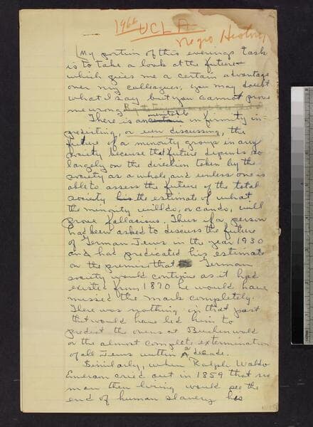 [Loose: Speeches and manuscripts by Loren Miller] (1965-1966). 10 items