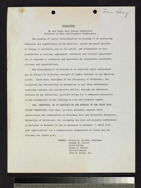 Thirteen items comprising twenty-three pages pertaining to real estate, containing memos, letters, and photocopies of clippings.