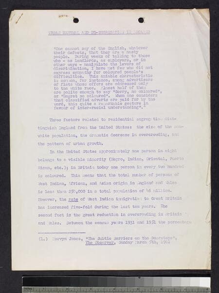 Urban Renewal and De-Segregation in England