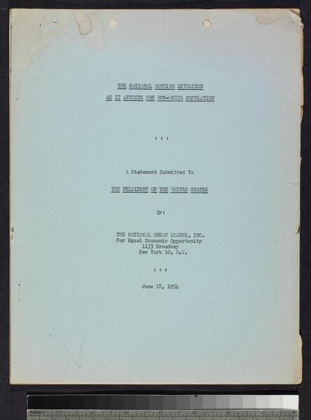 The National Housing Situation as it Affects the Non-White Population