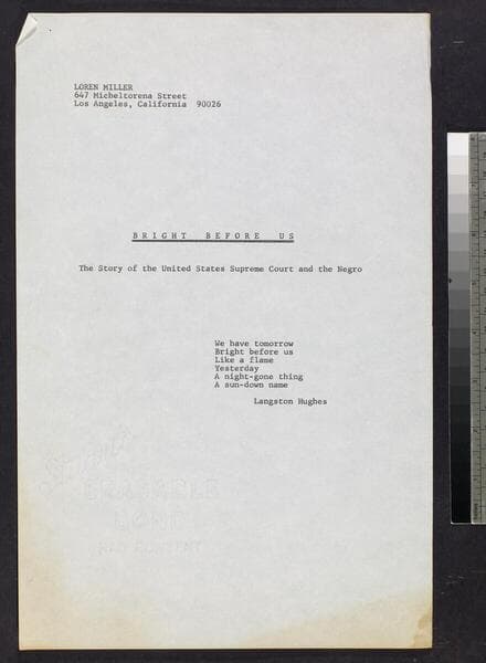 [Loose: "Bright Before Us" by Loren Miller] (1966). 1 item
