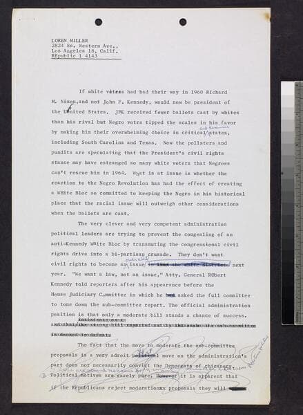 Untitled and incomplete speech by Loren Miller beginning "If white voters had had their way"