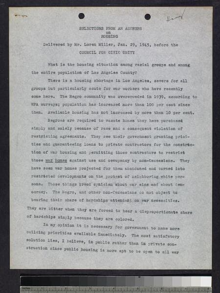 Speech: "Housing Patterns and Problems in Los Angeles"