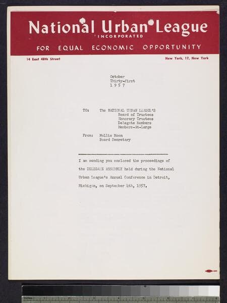 Memo by Regina M. Andrews to "Board of Trustees" and copy of meeting minutes
