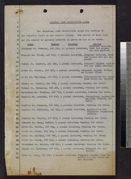Social and Economic Aspects of Segregation and Their Relations to Residential Race Restrictive Covenants