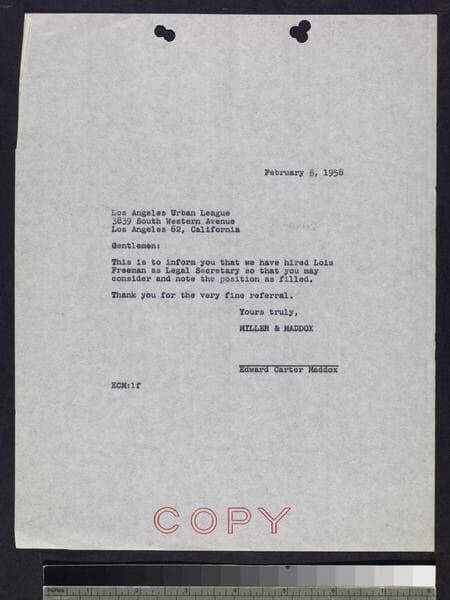 Letter by Maddox to LAUL