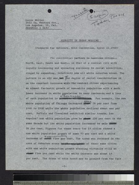 Speech: "Racial Problems in Ownership, Use and Occupancy of Urban Housing"