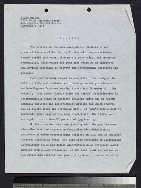 Speech: "Housing Patterns and Problems in Los Angeles"