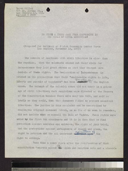 Speech: "Is There a Trend Away from Conformity in the Field of Civil Liberties"