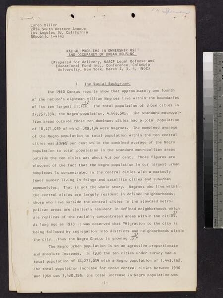 Speech: "Racial Problems in Ownership, Use and Occupancy of Urban Housing"