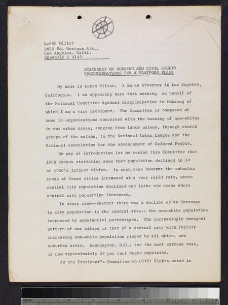 Speech: "Statement on Housing and Civil Rights Recommendations for a Platform Plank"