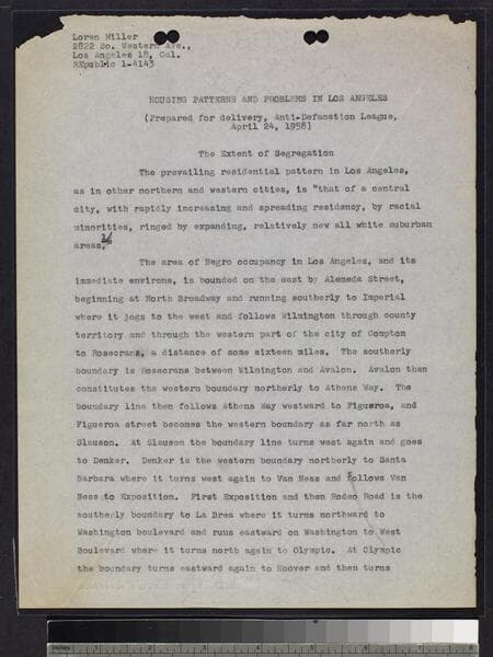 Speech: "Housing Patterns and Problems in Los Angeles"