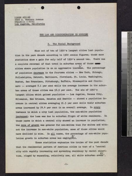 Speech by Loren Miller at Conference National Committee Against Discrimination in Housing