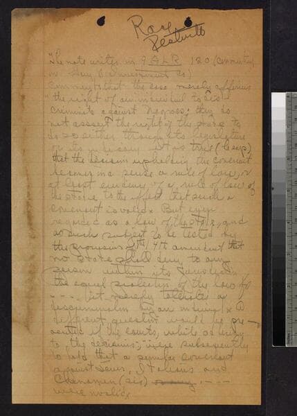 Social and Economic Aspects of Segregation and Their Relations to Residential Race Restrictive Covenants
