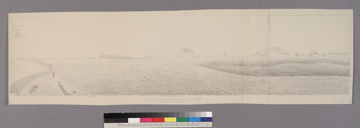 The collection contains J. Goldsborough Bruff's oversize revised version of his journal (c. 1853) which documents his journey across the American plains in 1849 by way of Lassen's Trail. Also included in the collection are 264 drawings of scenes from his overland journey, of various places he visited in California, and of his sea voyage to the Eastern United States via Mexico and Panama. Many of Bruff's drawings are in pencil, but thirty-eight of them were drawn with pastels and are in color.