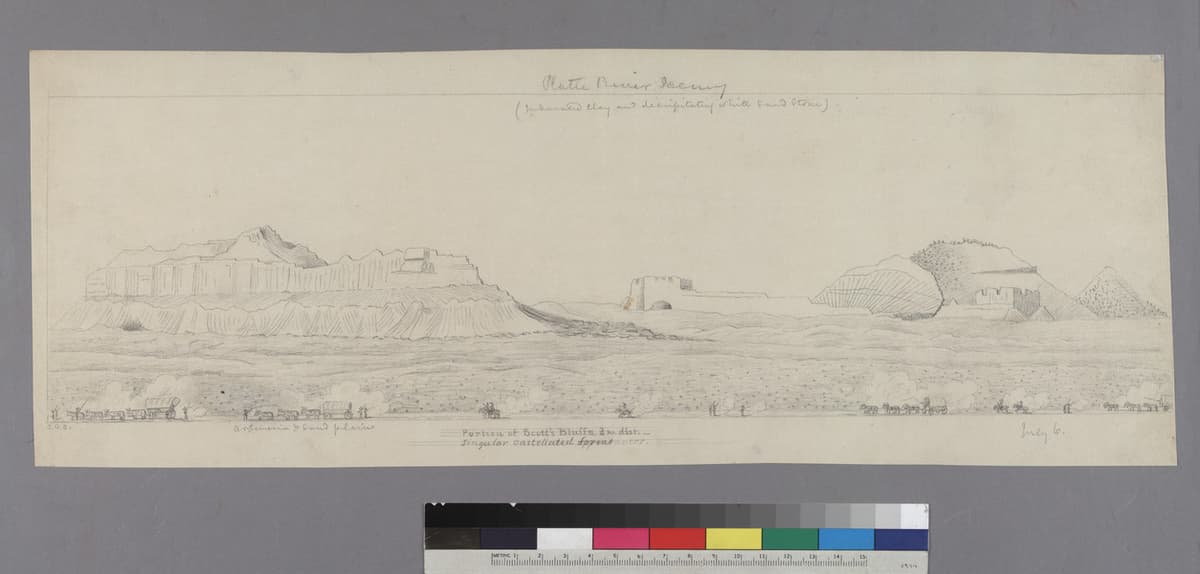 Plains of the Platte, View of lower end of Scott's Bluffs, 20 mi's. dist. From opposite to Chimney R