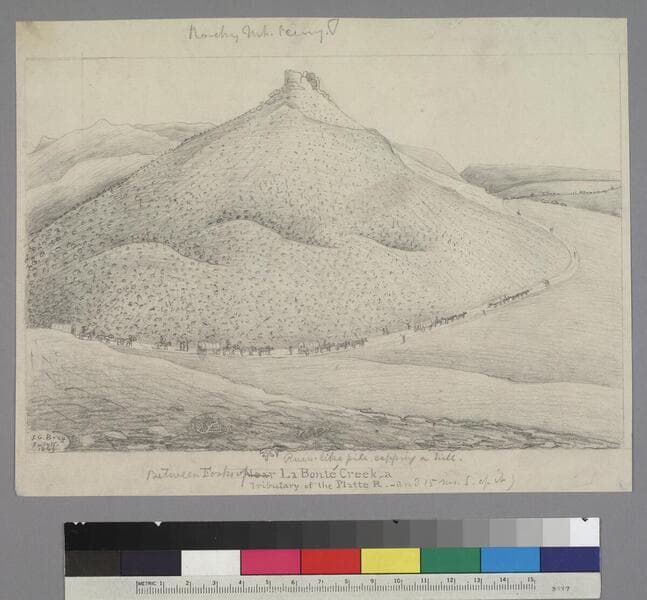 The collection contains J. Goldsborough Bruff's oversize revised version of his journal (c. 1853) which documents his journey across the American plains in 1849 by way of Lassen's Trail. Also included in the collection are 264 drawings of scenes from his overland journey, of various places he visited in California, and of his sea voyage to the Eastern United States via Mexico and Panama. Many of Bruff's drawings are in pencil, but thirty-eight of them were drawn with pastels and are in color.