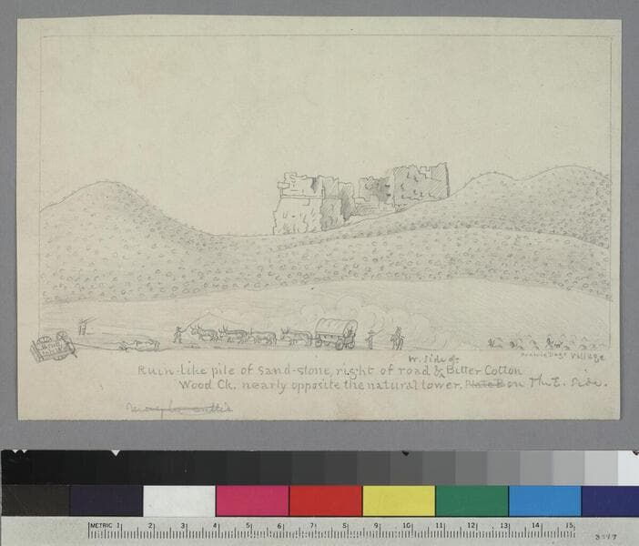 The collection contains J. Goldsborough Bruff's oversize revised version of his journal (c. 1853) which documents his journey across the American plains in 1849 by way of Lassen's Trail. Also included in the collection are 264 drawings of scenes from his overland journey, of various places he visited in California, and of his sea voyage to the Eastern United States via Mexico and Panama. Many of Bruff's drawings are in pencil, but thirty-eight of them were drawn with pastels and are in color.
