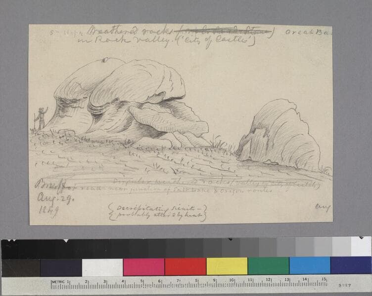 The collection contains J. Goldsborough Bruff's oversize revised version of his journal (c. 1853) which documents his journey across the American plains in 1849 by way of Lassen's Trail. Also included in the collection are 264 drawings of scenes from his overland journey, of various places he visited in California, and of his sea voyage to the Eastern United States via Mexico and Panama. Many of Bruff's drawings are in pencil, but thirty-eight of them were drawn with pastels and are in color.