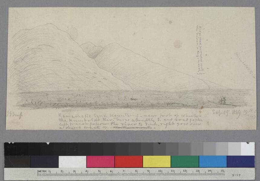 The collection contains J. Goldsborough Bruff's oversize revised version of his journal (c. 1853) which documents his journey across the American plains in 1849 by way of Lassen's Trail. Also included in the collection are 264 drawings of scenes from his overland journey, of various places he visited in California, and of his sea voyage to the Eastern United States via Mexico and Panama. Many of Bruff's drawings are in pencil, but thirty-eight of them were drawn with pastels and are in color.