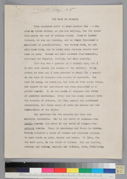 The Ways of Science; an address given at Commencement, Occidental College Bulletin, New Series, 14, 1936)