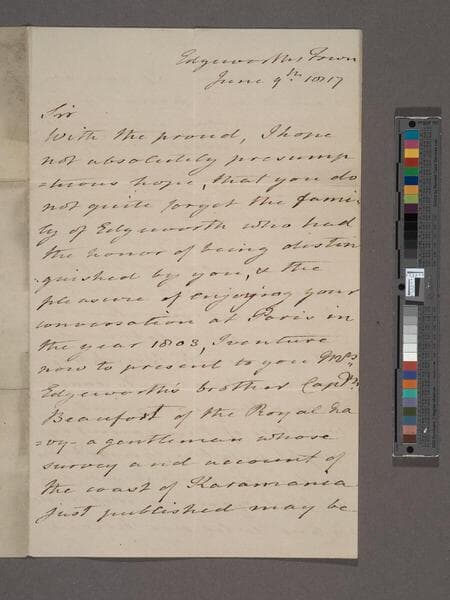 ![Beaufort, Sir Francis. Letter to [Frances Anne (Beaufort) Edgeworth] and Maria [Edgeworth]](/_next/image?url=https%3A%2F%2Frail.huntington.org%2FIIIF3%2FImage%2F22APN4S7D3J%2Ffull%2F%5E360%2C%2F0%2Fdefault.jpg&w=750&q=75)
