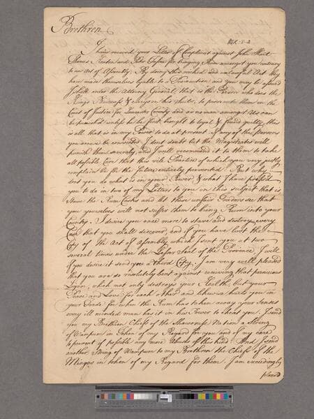 Governor George Thomas letter, Philadelphia, to Lenape Indian Chiefs