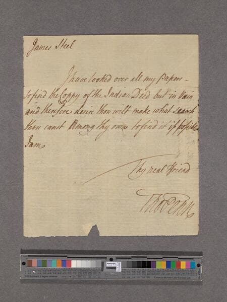 A collection of correspondence, documents, and maps related to the Walking Purchase and the Councils of Easton retained by the office of Pennsylvania's governor William Denny (in office from August 1756 to October 1759). The bulk of the collection consists of the records of the Council of Easton (August 1757) and the inquiry into the legality of the Walking Purchase authorized by Denny. It contains affidavits, sworn testimony, exhibits, memorandum, correspondence, and notes; this material includes original documents dating back to the time of the fraudulent land deal as well as some military correspondence. The collection also includes several documents and letters concerning Native American troubles on the frontier in the 1740s, along with their protests to the Proprietors over rum being sold to their people. Important persons in the collection include, among others, William Allen, Benjamin Chew, George Croghan, William Denny, Benjamin Franklin, James Hamilton, William Markham, Israel Pemberton, Thomas Penn, Richard Peters, Nicholas Scull, Teedyuscung (Delaware Chief), George Thomas, and Conrad Weiser. Almost all of the material in the collection is docketed and bears the initials or signatures of W. H. Rolph, followed by hyphenated numbers. The collection also contains oversize material and a small group of 20th century newspaper clippings about the Walking Purchase and the material in this collection.